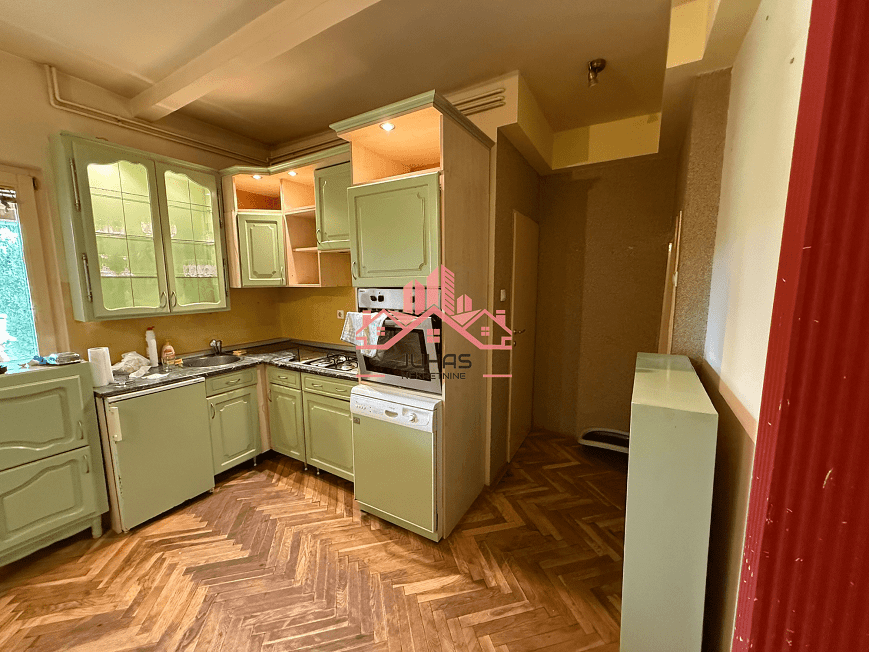 Na prodaju kuća u nizu od 132 m² na tri etaže, sa dvorištem i terasom. 2 sobe, dnevni boravak sa kuhinjom, podrum. Gasno grejanje, useljiva uz manja ulaganja.
