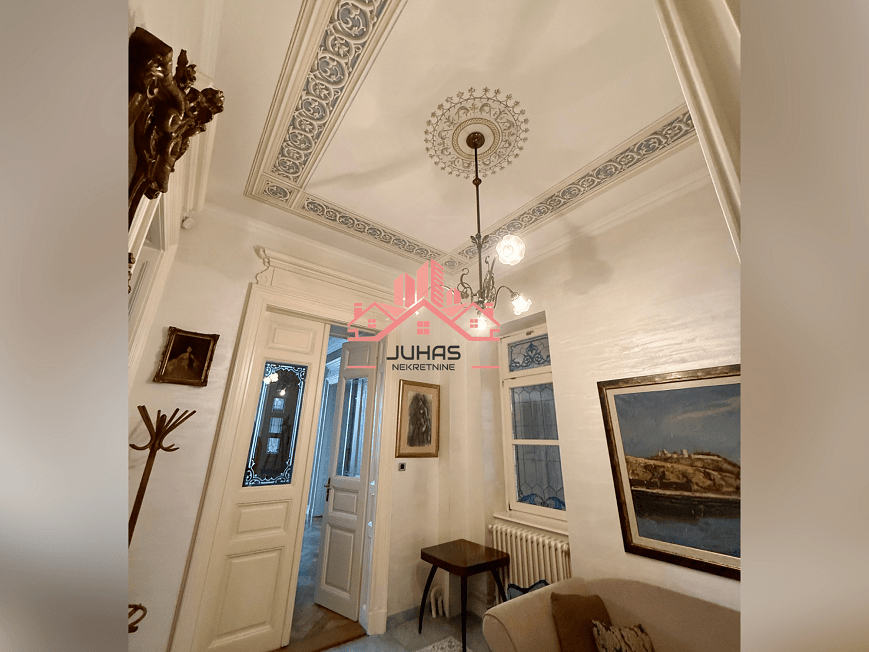 Stan je kompletno renoviran, uz maksimalno očuvanje originalnih salonskih elemenata koji ga izdvajaju na tržištu. Visoki plafoni sa bogatom dekoracijama, elegantne linije, dvokrilna vrata i obilje prirodne svetlosti stvaraju jedinstven ambijent koji se retko nalazi.