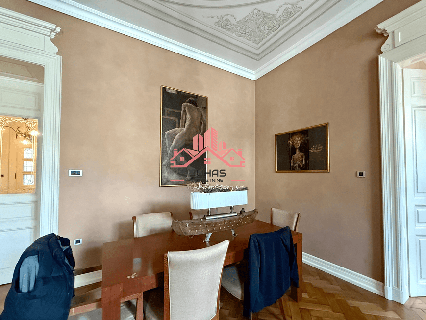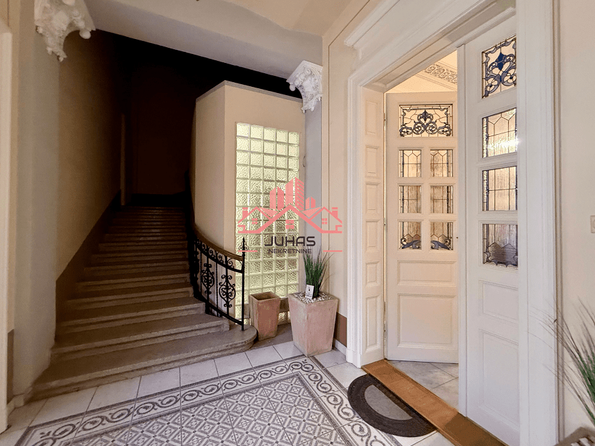 U ponudi je izuzetna nekretnina – salonski stan površine 114 m², uz dodatnih 23,5 m² zasebne garsonjere i 10 m² terase, smešten u prelepoj, arhitektonski upečatljivoj zgradi koja sama po sebi nosi istoriju, stil i prestiž.